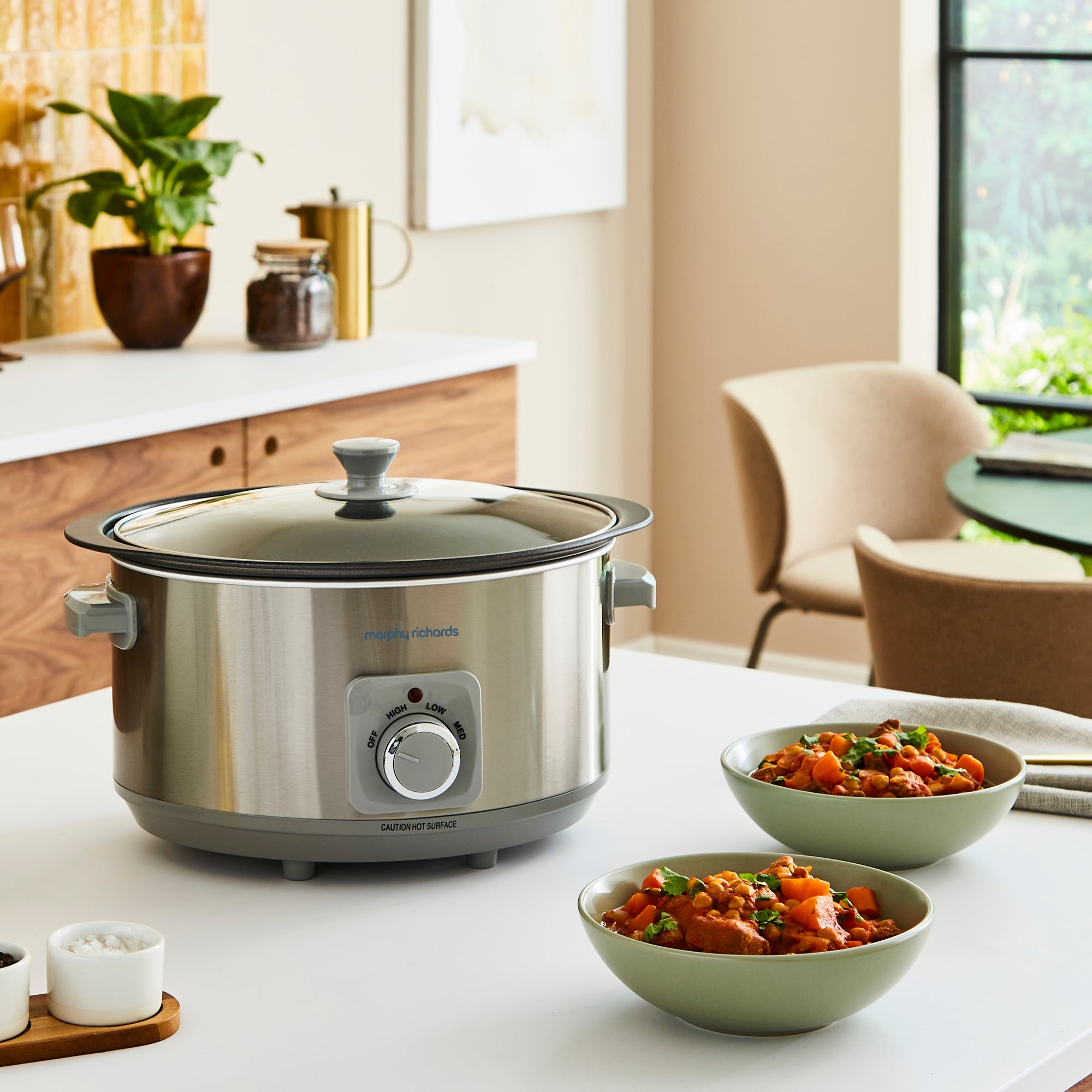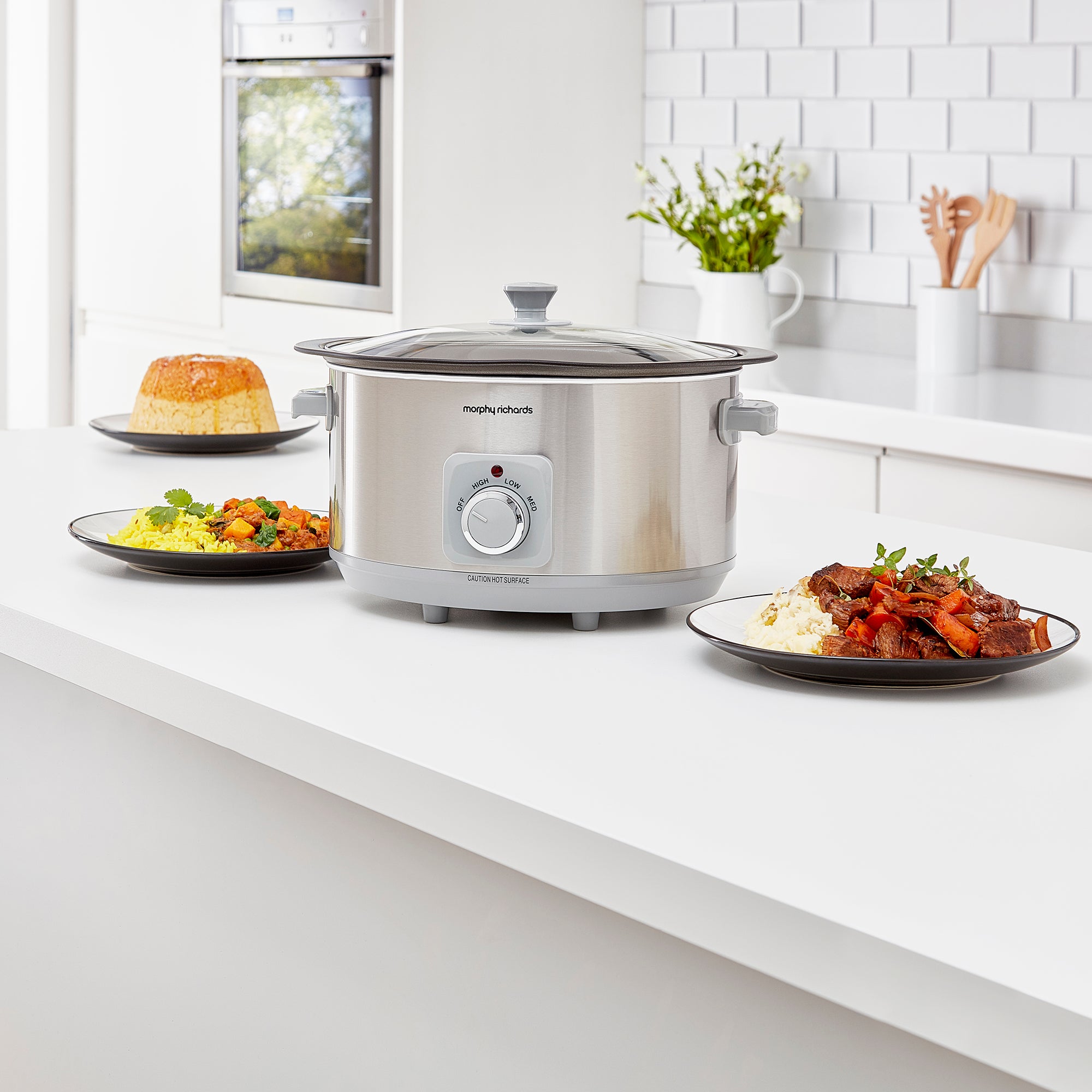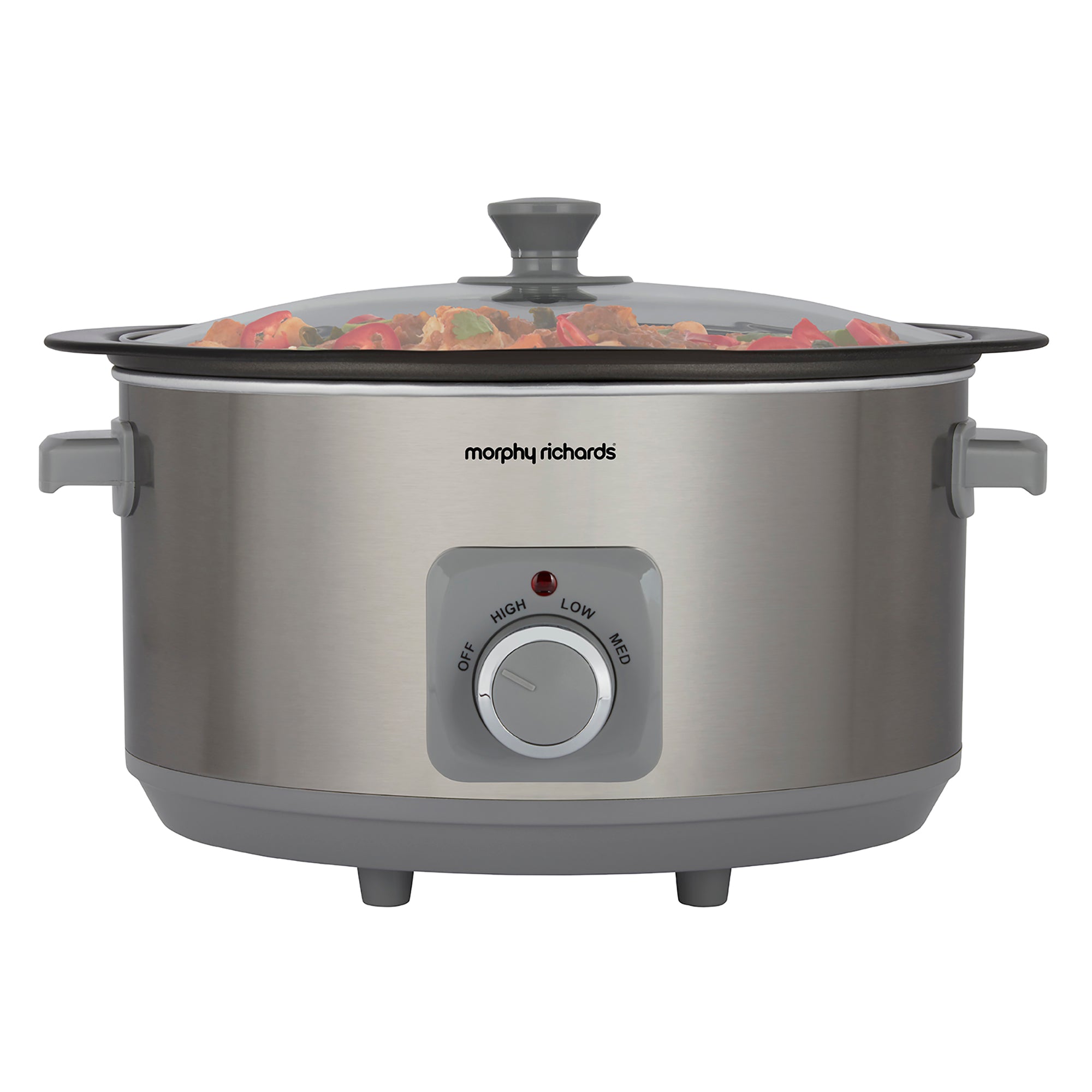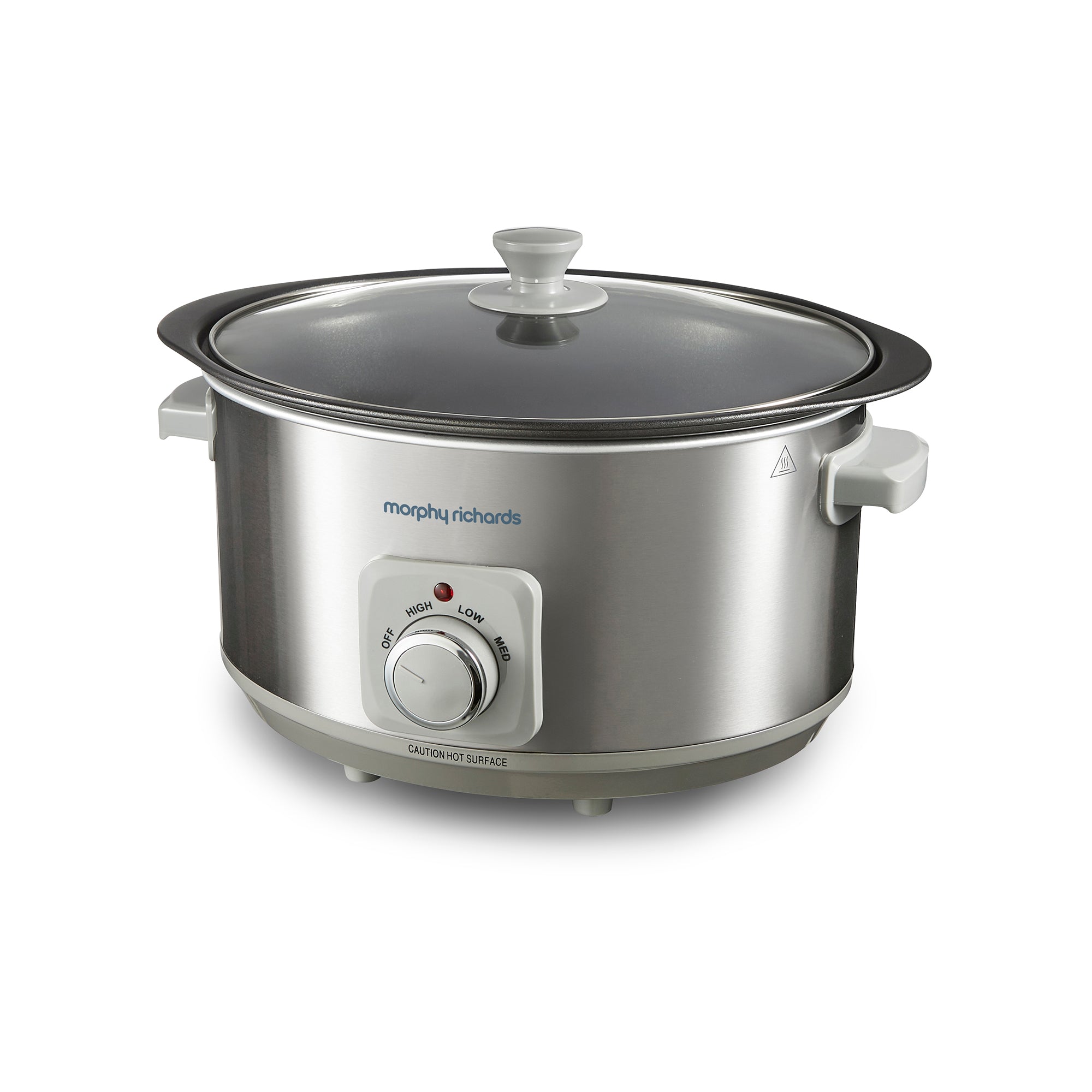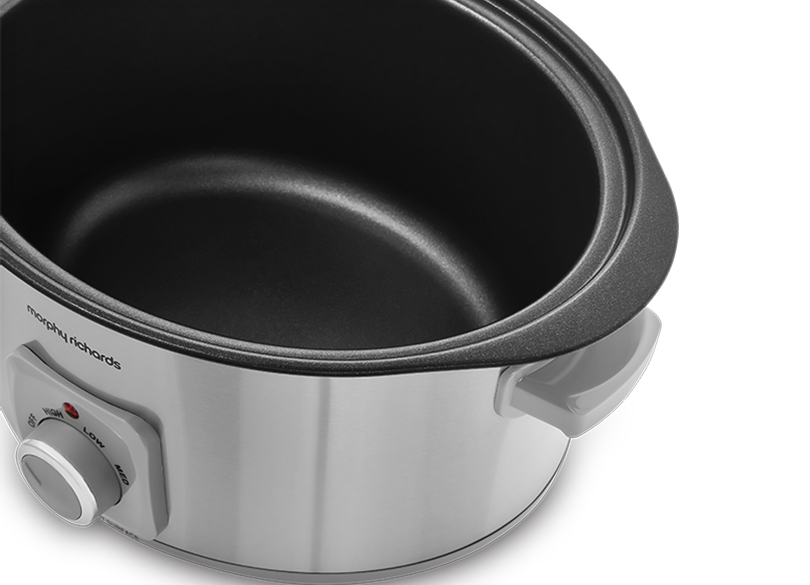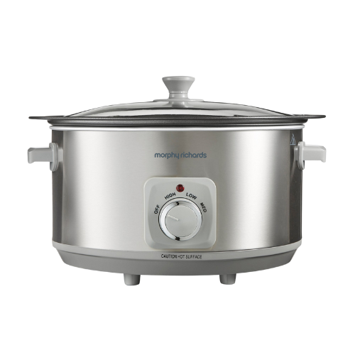 For complex casseroles, spicy curries and even large joints of meat, our Morphy Richards Brushed Stainless Steel 6.5L Slow Cooker makes mealtimes a piece of cake. This must-have slow cooker, also known as a crockpot is designed with 3 heat settings, a toughened glass lid and single dishwasher-proof cooking pot making this slow cooker the perfect choice for whipping up hearty, nutritious meals for the whole family while keeping clear-up to a minimum.